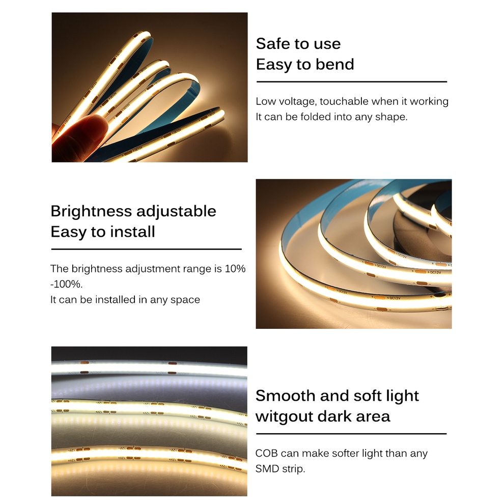 Cob là gì? 💕Cob (Chips on Board), là một công nghệ mới của bao bì LED cho động cơ đèn LED. 💕Cob LED được đóng gói nhiều chip, có thể tăng diện tích chiếu sáng gấp 10 lần, do đó tránh chói khó chịu ở mức tối đa. 💕Cob là một dải ánh sáng đặc biệt để trang trí khách sạn. Ánh sáng là tiên tiến và sáng! Thông tin chi tiết: Số lượng LED: 480LED / m Điện áp đầu vào: DC12V / 24V Chiều rộng FPCB: 480LED / m - 8mm, Màu ánh sáng: Đỏ / Hồng / Xanh lá / Xanh dương Chiều dài: 1m / 2m / 3m / 5m Chỉ số hoàn màu: Ra> 90 Nhiệt độ hoạt động: -20℃-+45℃ Nhiệt độ bảo quản: -20℃-+60℃ Góc nhìn: 180° Đóng gói: 1 chiếc × Dải LED COB (không bao gồm nguồn điện) Nếu bạn cần mua riêng nguồn điện, vui lòng liên hệ với cửa hàng 1m yêu cầu nguồn điện 20w 2m yêu cầu nguồn điện 24w 3m yêu cầu nguồn điện 36w 5m yêu cầu nguồn điện 60w