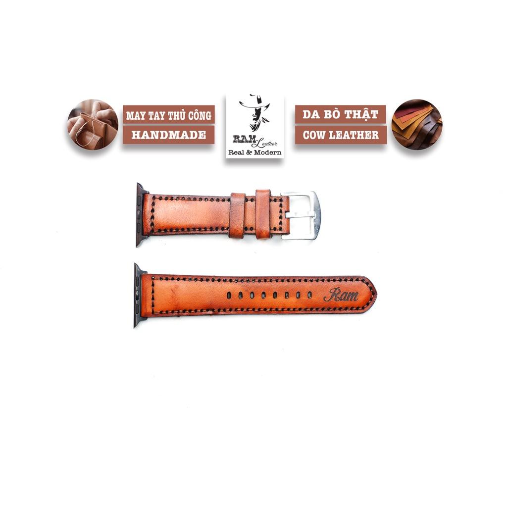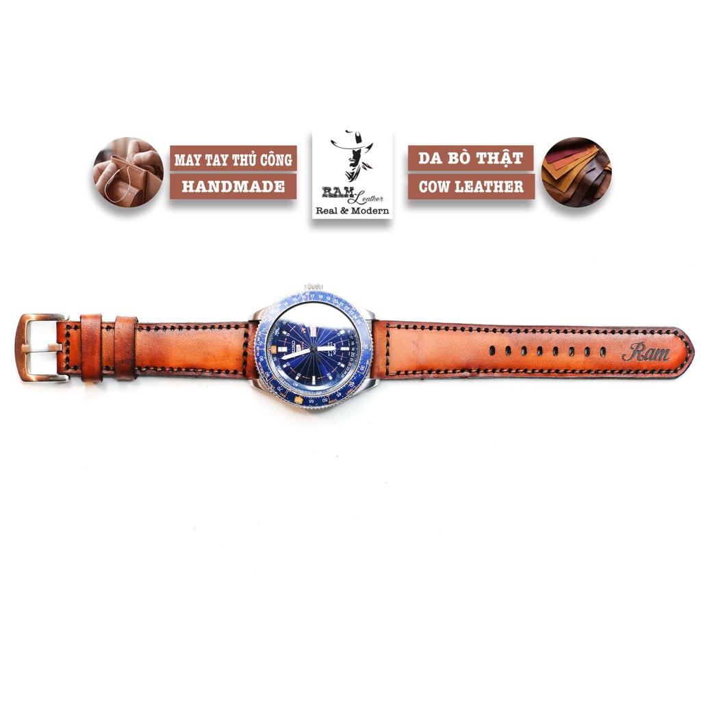 Dây đồng hồ da bò thảo mộc vegtan cao cấp màu nâu sáng bền chắc - RAM Leather