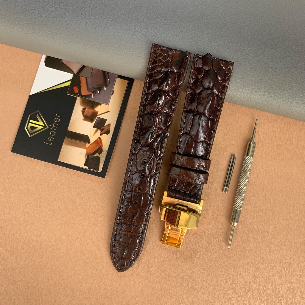 Dây Đồng Hồ Da Cá Sấu Thương hiệu DL Leather ✥ Sản phẩm: Dây đồng hồ da cá sấu cao cấp ✥ Sản phẩm: ● Mặt ngoài bằng Da Cá Sấu xịn 100%, Lấy phần Da Lườn Tay (Chân) Cá Sấu-Vân Gai Hầm Hố, Độc Đáo không trùng lặp ● Mặt đế làm bằng da bò cao cấp, tạo độ mềm mại,