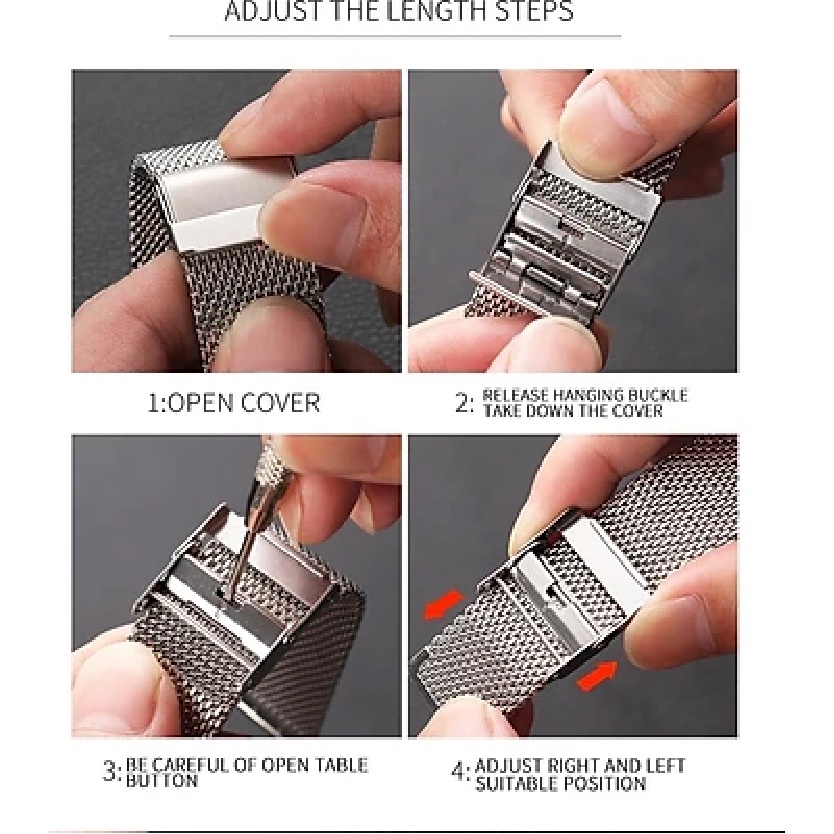 Dây đeo đồng hồ bằng thép không gỉ 304 chất lượng cao cấp Khóa bấm tiện lợi và chắc chắn. Dễ dàng thay đổi kích thước để vừa với cổ tay của bạn Khóa bấm nên dây sẽ ko bị tuột do va chạm giống như dây khóa nam châm, cho thời gian sử dụng lâu dài hơn và phù hợp với cổ t