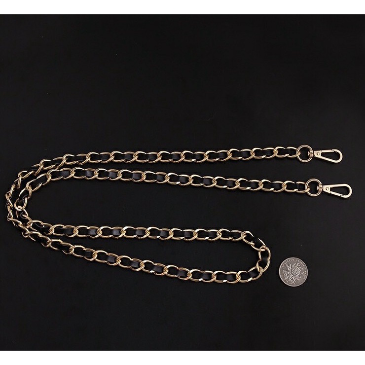 Dây Đeo Túi Xách Da Đen Đan Xích 10mm