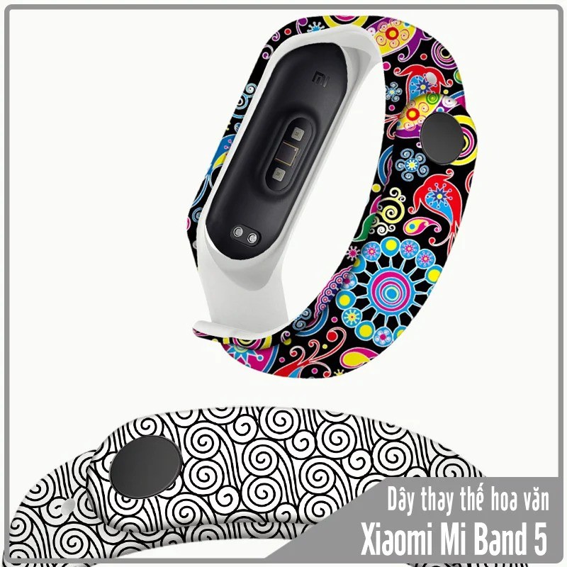 Dây đeo thay thế cho Xiaomi Miband 5 hoa văn 19 mẫu khác nhau, nhựa dẻo TPU
