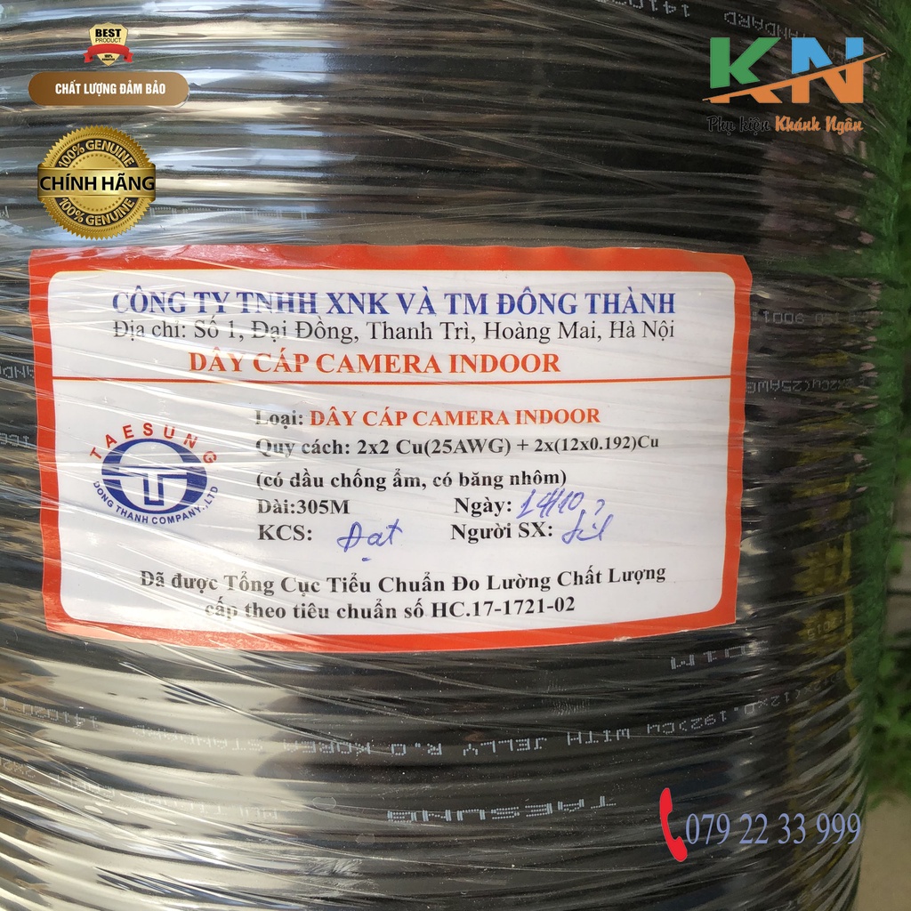 Thông tin chi tiết cáp điện thoại 4 lõi đồng, có nguồn và có dây gia cường Taesung Thương hiệu TAESUNG đến từ Hàn Quốc. Lõi dẫn tín hiệu gồm 4 lõi làm bằng Đồng nguyên chất. Kích thước lõi: 0.5mm. Lớp cách điện PE. Lớp băng nhôm chống nhiễu. Dây gia cường với 7 sợi thép x 0.33mm. Hai dây nguồn làm bằng Đồng, mỗi dây với 12 sợi đồng x 0.192mm. Lớp vỏ bọc PVC chống cháy, bảo vệ dây. Có dầu. Quy cách: 2x2 Cu (25AWG) + 2x(12x0.192) Cu. Đóng gói lô nhựa: 305m/cuộn. PHỤ KIỆN KHÁNH NGÂN Liên hệ: 079.22.33.999 Địa chỉ: Vườn hoa khu Tái Định Cư Xuân Phương - TDP Số 8 Tu Hoàng - Phương Canh - Nam Từ Liêm - Hà Nội #camera #phu #kien #dien #thoai #may #tinh #dahua #dss #hikvision #kbvision #camera_chinh_hang #xin #chat_luong #camerachinhhang #phukienchinhhang #hangxin #phukienkhanhngan #phu_kien_khanh_ngan #cameragiare #cameradahua #cameraip #camerathongminh