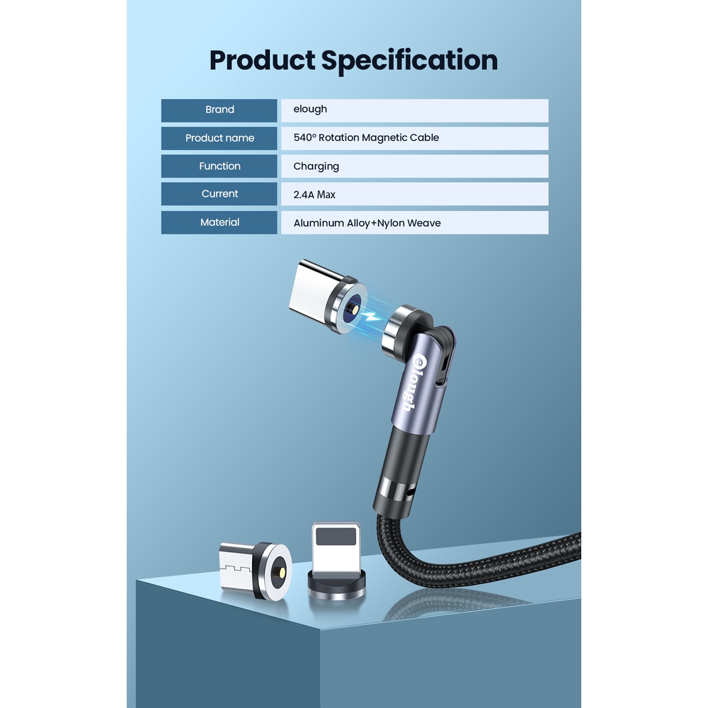 Dây Cáp Sạc Nhanh Nam Châm 3 Trong 1 USB Type C Micro 360°+180° Dây Sạc Xoay