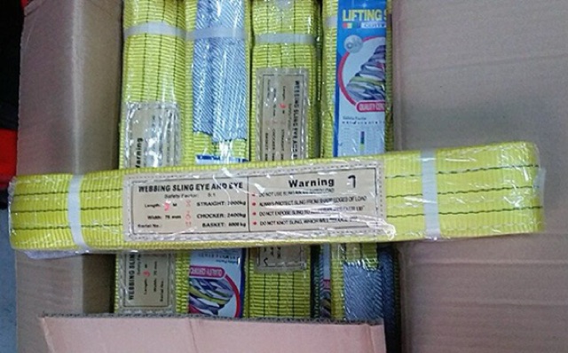 Dây cáp vải cẩu hàng với nhiều mẫu mã và tải trọng. thường được sử dụng để cẩu hàng hóa trong các nhà xưởng, khu chế xuất, kho hàng, bến bãi. Dây cáp vải cẩu hàng có tính chống trượt , có khả năng chống lại các hóa chất và dầu mỡ ở các công trình. - Tải trọng và Kích