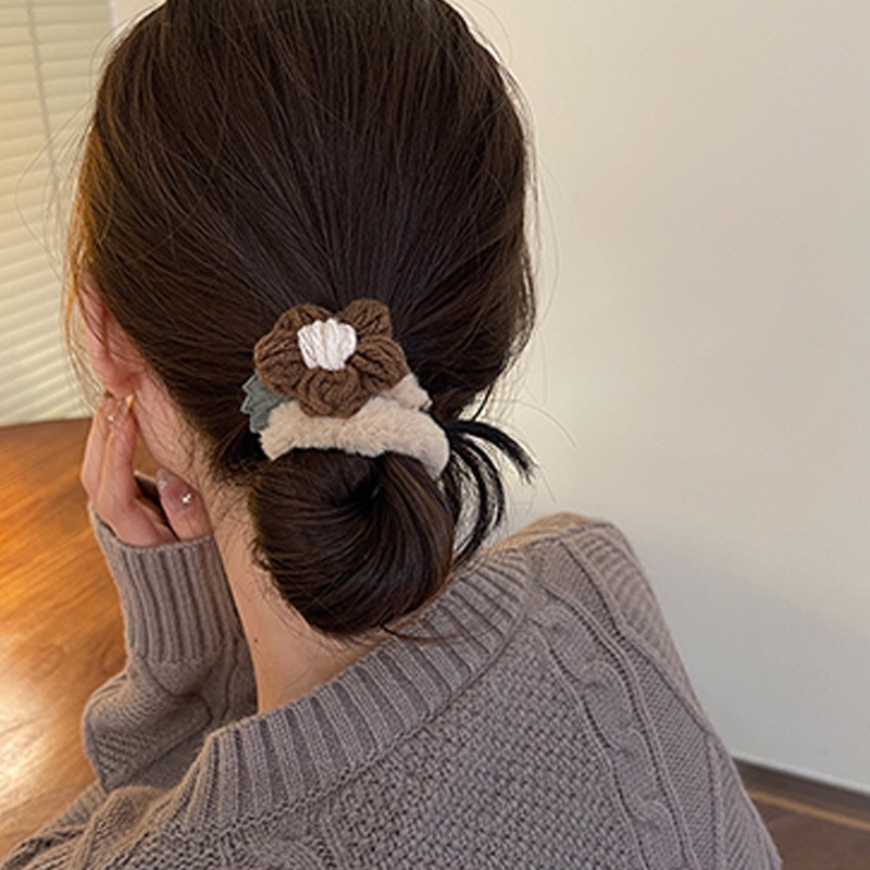 Dây Cột Tóc Đan Len Đính Hoa Dễ Thương Thời Trang Cho Nữ