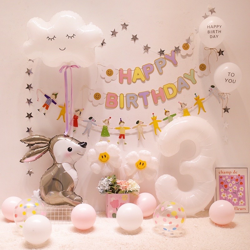 Dây chữ Happy Birthday hình hoa cúc trang trí sinh nhật phong cách Hàn Quốc