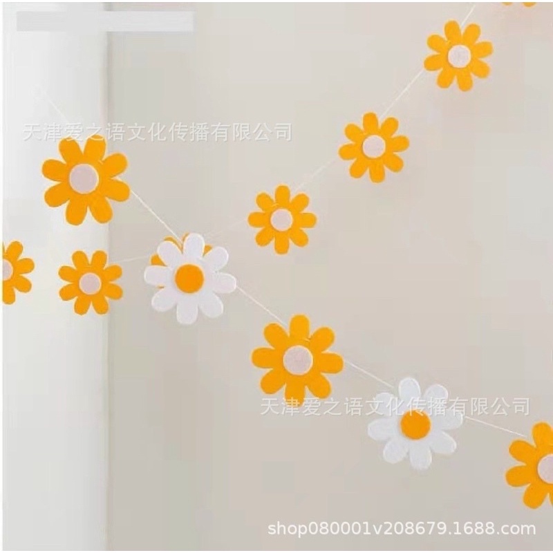 Thông tin sản phẩm Dây chữ Happy Birthday hình hoa cúc trang trí sinh nhật phong cách Hàn Quốc ► Chất liệu : vải nỉ dạ ► Kích thước : • Dây hoa cúc dạ: dây dài 1,5m • Hoa cúc khổng lồ: 110cm • Hoa cúc mặt cười: 50cm •
