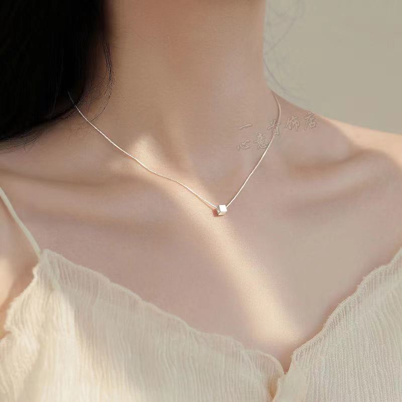 Dây chuyền mặt vuông nữ khối kim loại trang sức