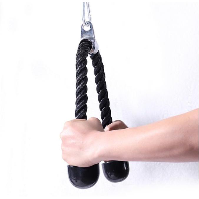 Dây thừng tập tay sau dây kéo cáp tập tay sau, cơ xô, cơ bụng TXstarTHÔNG TIN SẢN PHẨM-Trọng lượng: 0.7Kg– Chiều dài: 68cm– Sản phẩm được làm từ chất liệu bền chắc sợi tổng hợp bền chắc, 2 đầu dây...