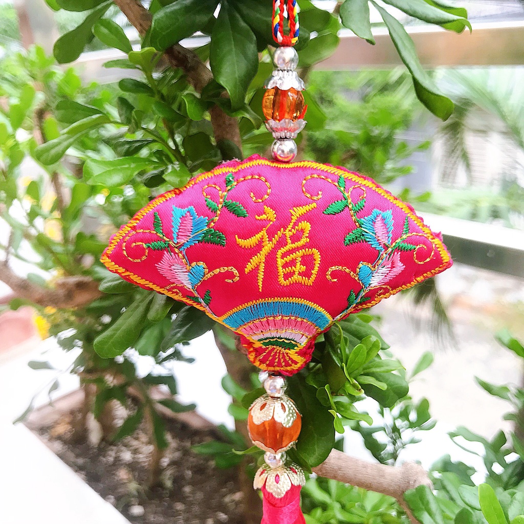 Dây treo hình cái quạt phong thủy nhỏ xinh nhiều màu sắc, thích hợp để trang trí