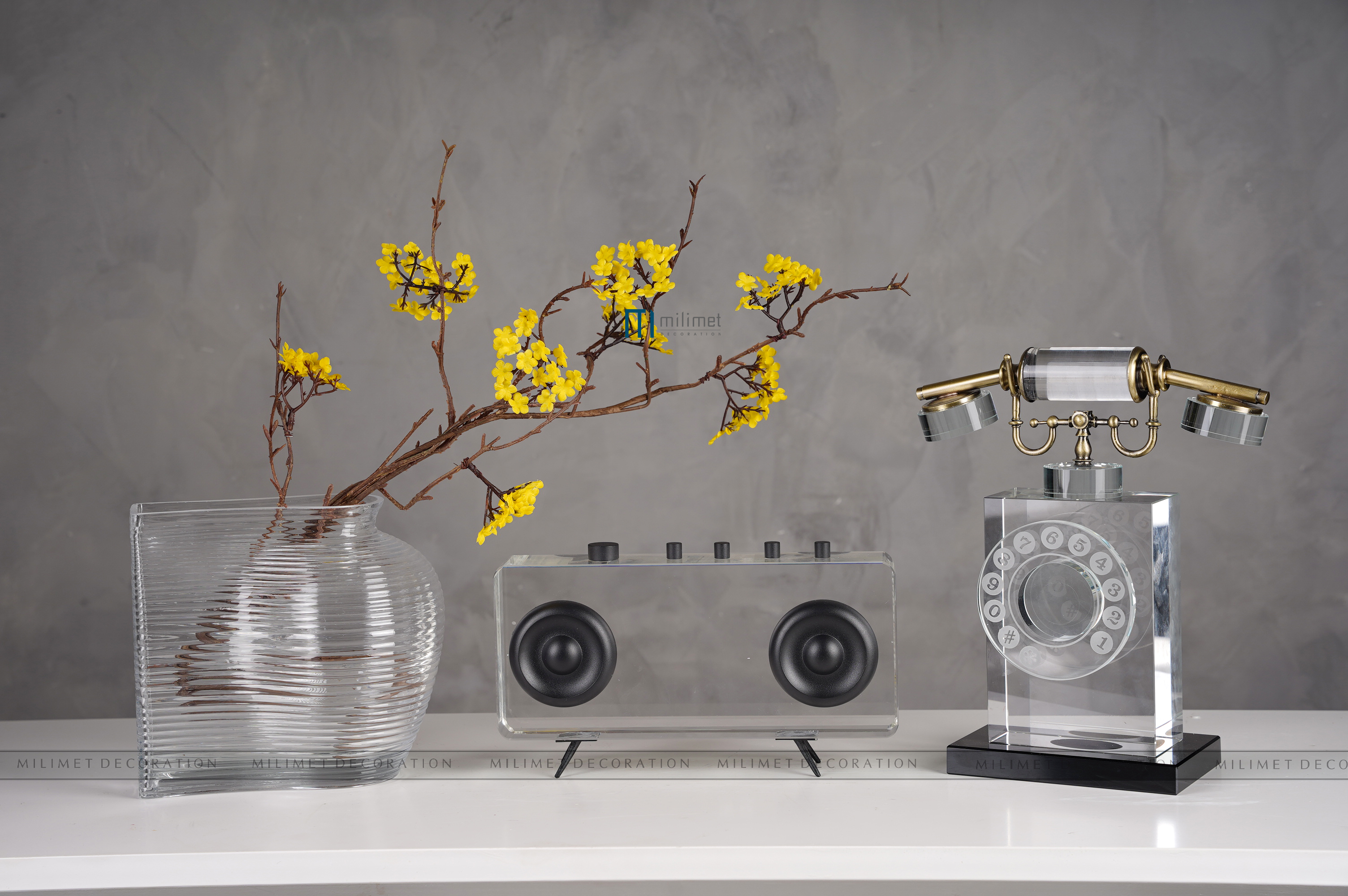 - Tên sản phẩm: Décor Đài Cassette - Kích thước: 26*6*14cm- Chất liệu: Thủy tinh- Công dụng: Trang trí kệ tủ, kệ tivi giúp căn nhà trở nên đẹp và sinh động hơn...