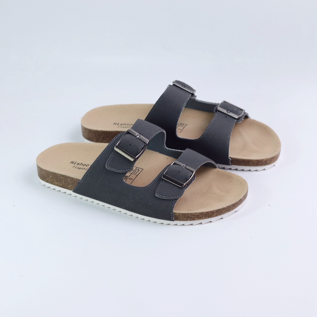 Dép Đế Trấu Nam Nữ Birken Quai Ngang 2 Khóa Chất Liệu Da Bò Hishoo R093