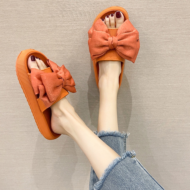 Dép Bánh Mì Nữ Đế Dày Trong Nhà Cute Phối Nơ Cao Su Xịn Chống Trơn Trượt Đi Chơi Dạo Biển Ullzang