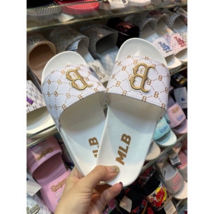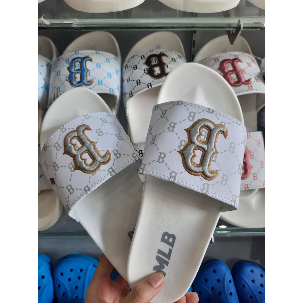 Dép cao su cao cấp Mlb Boston Monogram nữ, đế êm, nhẹ, không trơn, không thấm nước