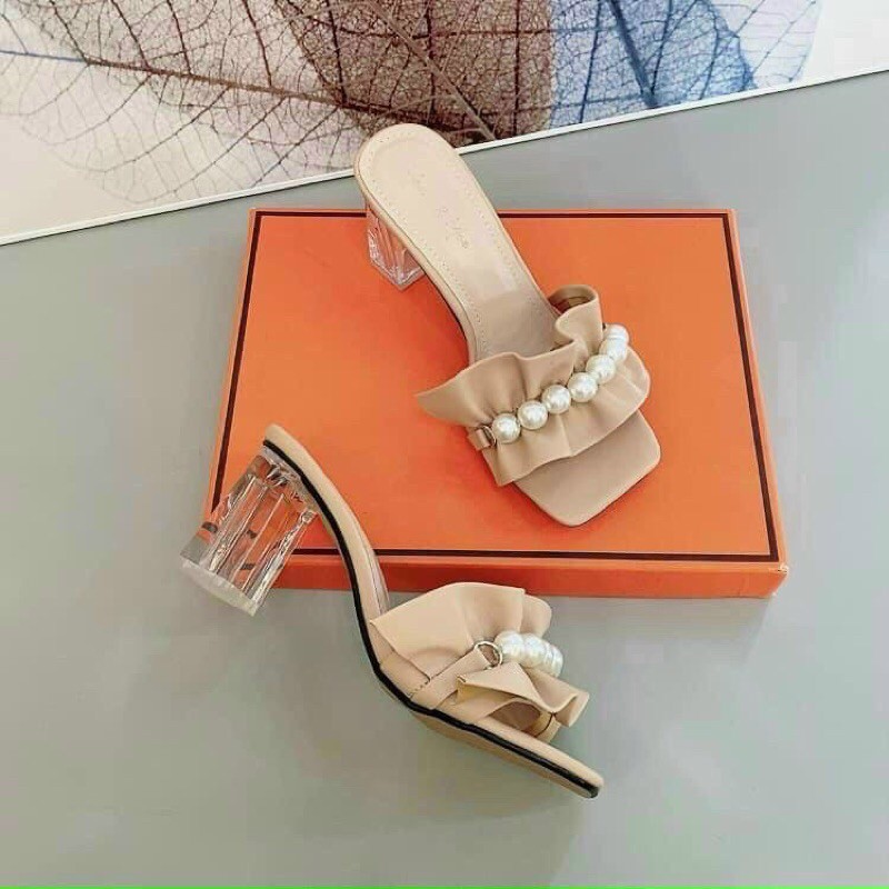 Dép guốc nữ quai nhún ngọc gót vuông trong 7p cực hot