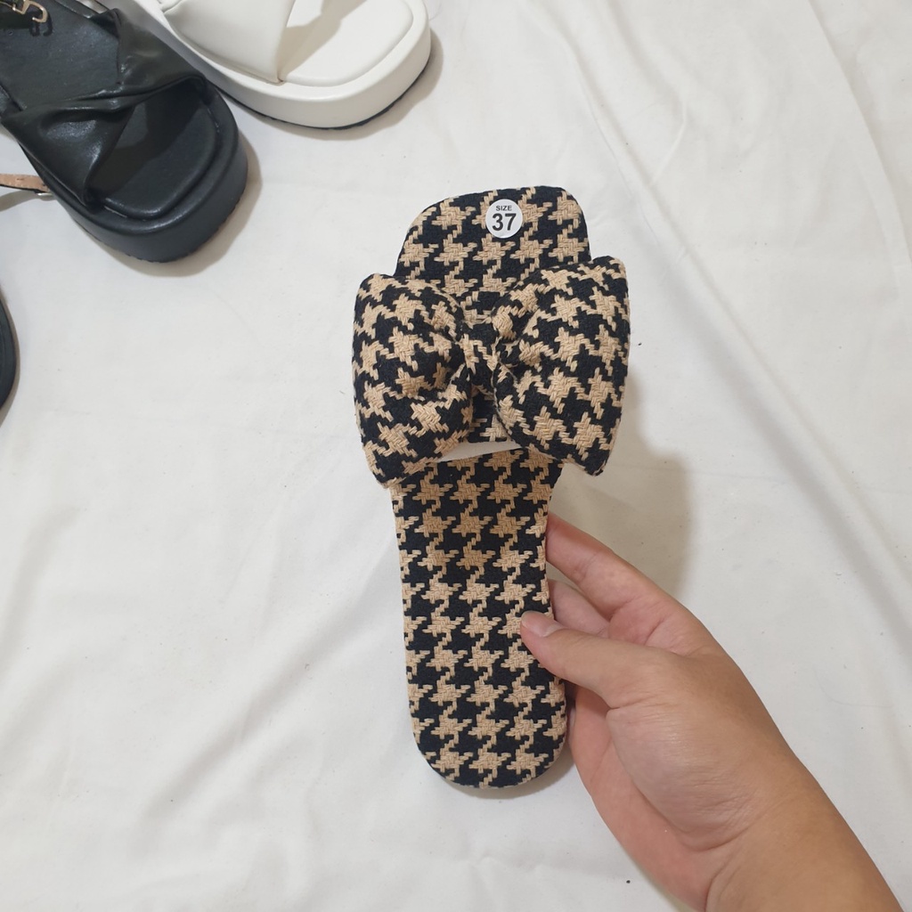 Dép hè, dép nơ ô vuông hè sang trọng cá tính phù hợp mọi lứa tuổi, phong cách đính nơ to bắt mắt. Giay Jery Store