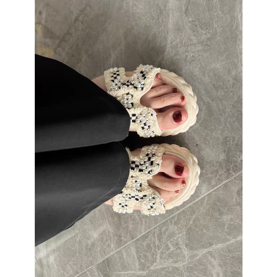 Dép Kiểu Đế Cao Tua Rua Phối Hạt Ngọc Dễ Phối Đồ