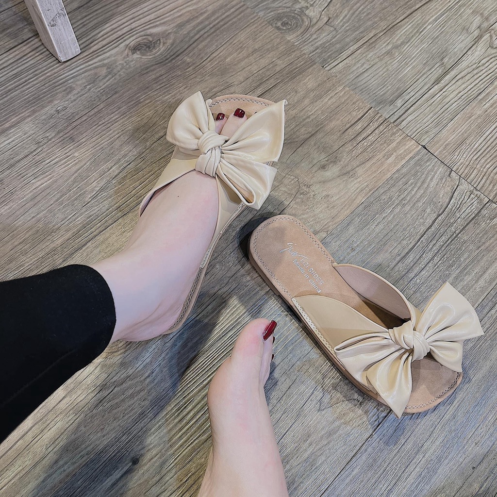 Dép nơ thắt da mềm quai ngang quảng châu cao cấp de3164