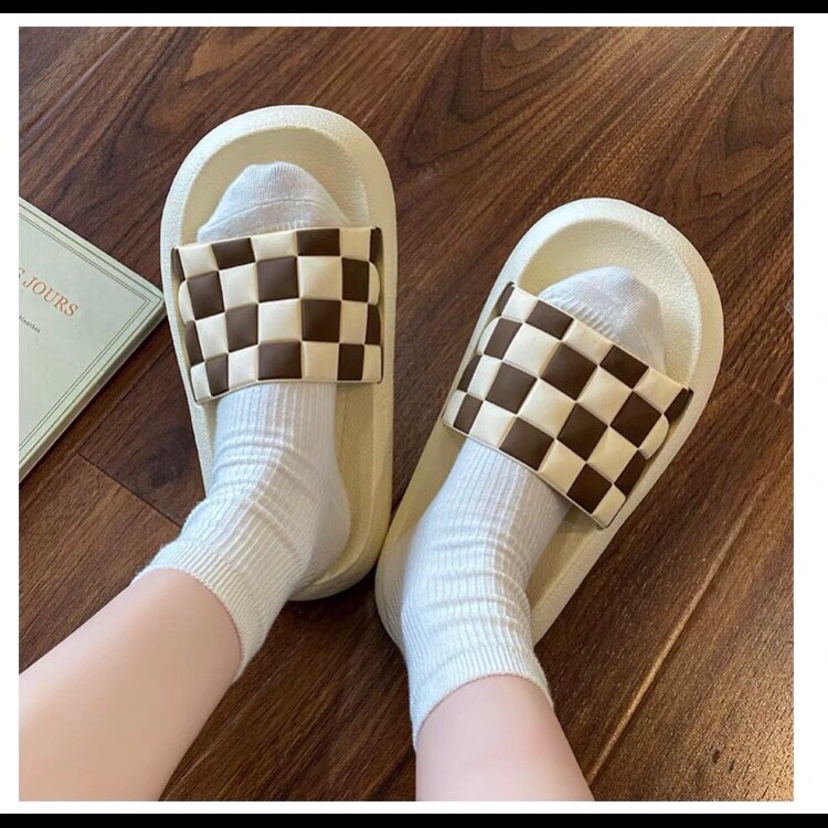 Dép nữ đế bánh mì kẻ karô 2 màu siêu hót