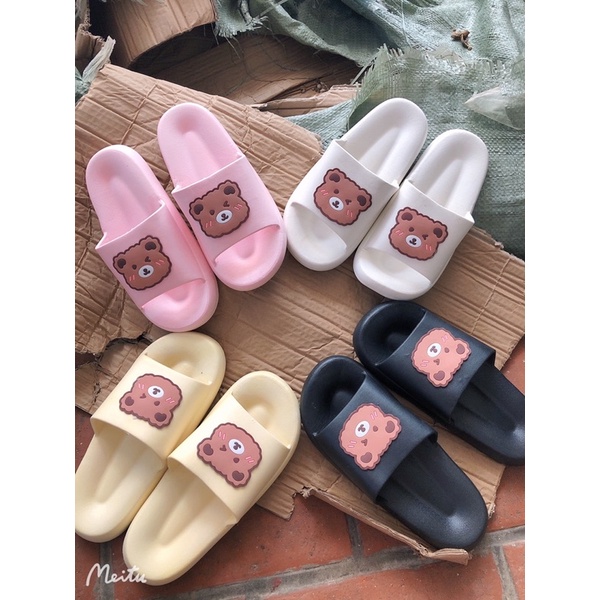 Dép nữ EVA tăng chiều cao đế bánh mỳ đúc liền hoạ tiết hình gấu màu trắng/đen/hồng/vàng
