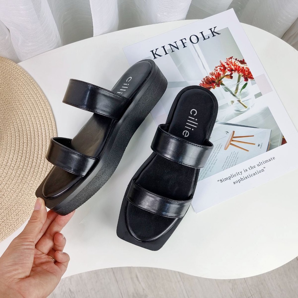 Dép nữ quai ngang đế bánh mì mùa hè trendy êm mềm cao 3cm đi chơi dạo phố Cillie 1113
