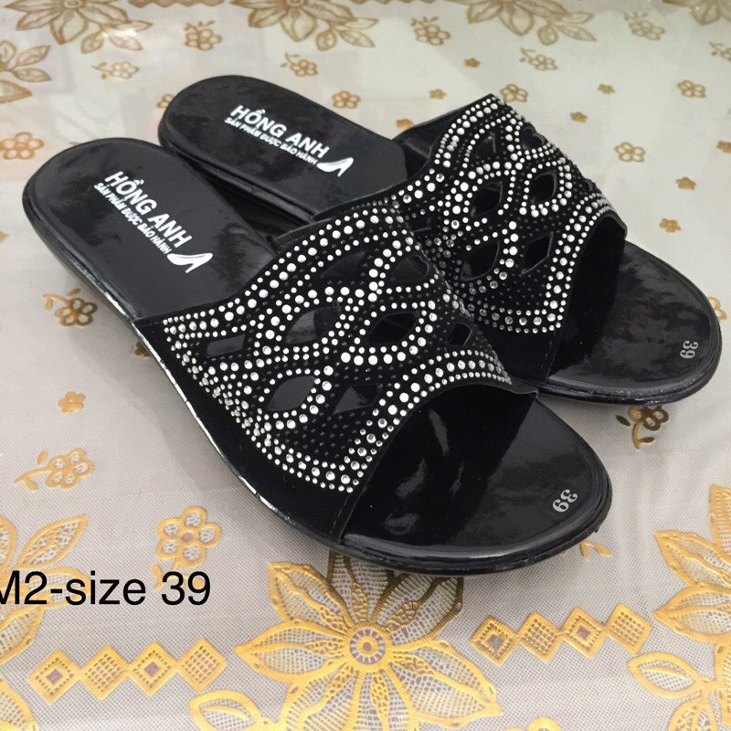 Đây là dép thiết kế dành cho các bà các chị tuổi trung niên Chất liệu đế xuồng , thấp 3F, phối quai đính đá nhân tạo, tạo nên dép nhẹ nhàng, sang trọng, thích hợp cho giới nữ