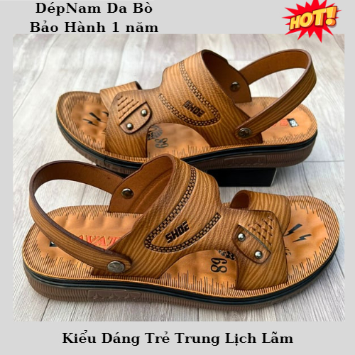 Dép Nam Da Bò Cao Cấp Dép Trung Niên Đế Đúc Mặt Dép Mát Xa Chân Sang Trọng Lịch lãm THÔNG TIN SẢN PHẨM: - Đặc Biệt: Mặt Đế có hạt Mát xa Giúp lưu Thông máu bàn Chân. Giúp Đi Êm Chân -Chất liệu: Da Bò mềm ko bị đau chân -Chất liệu đế: Đế Đúc Gầm Kếp êm mềm chống
