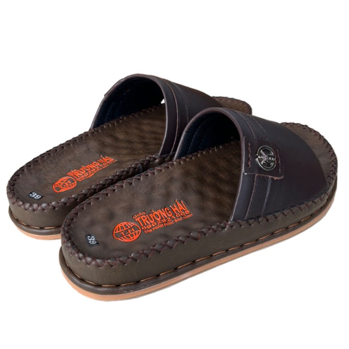 Dép nam da bò quai ngang một bản đế cao 3.5cm chính hãng Trường Hải DN155