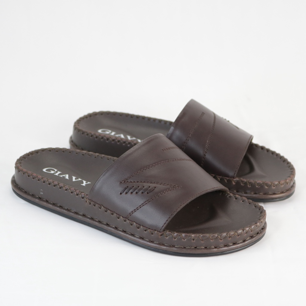 DÉP NAM Thương hiệu độc quyền : GIAVY. Xuất xứ: Việt Nam. Mã sản phẩm: DT815 Kiểu dáng: quai bảng ngang, đế cao 2 phân Chất liệu quai da mềm êm chân, đường may tỉ mỉ. Đế cao su, có rãnh ít trơn trượt, keo dán chắc chắn bền bỉ. Màu sắc: Nâu. Chiều cao: 2 cm. Kích cỡ :