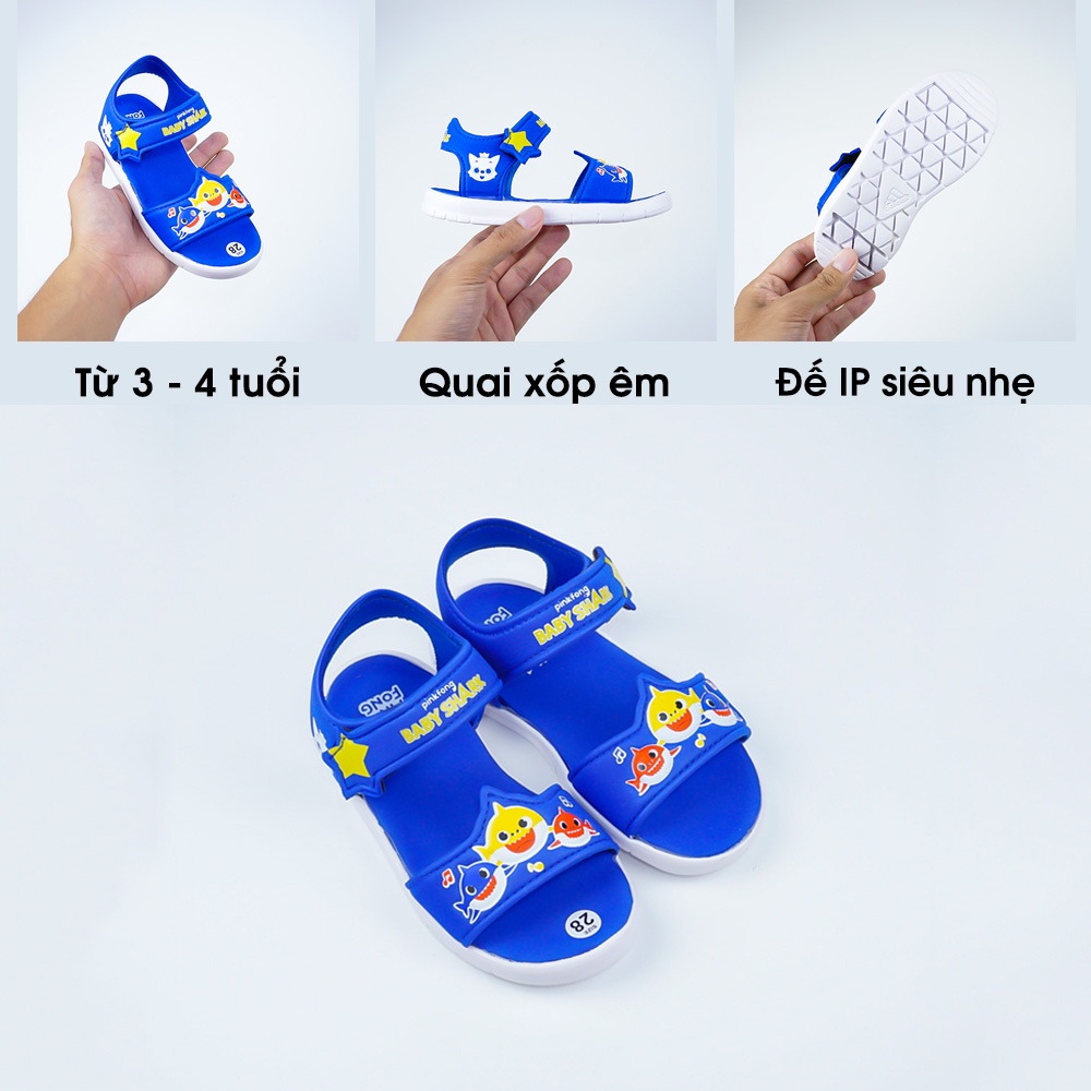 Dép quai hậu bé gái, giày sandal bé trai Baby Shark quai mềm đế nhẹ
