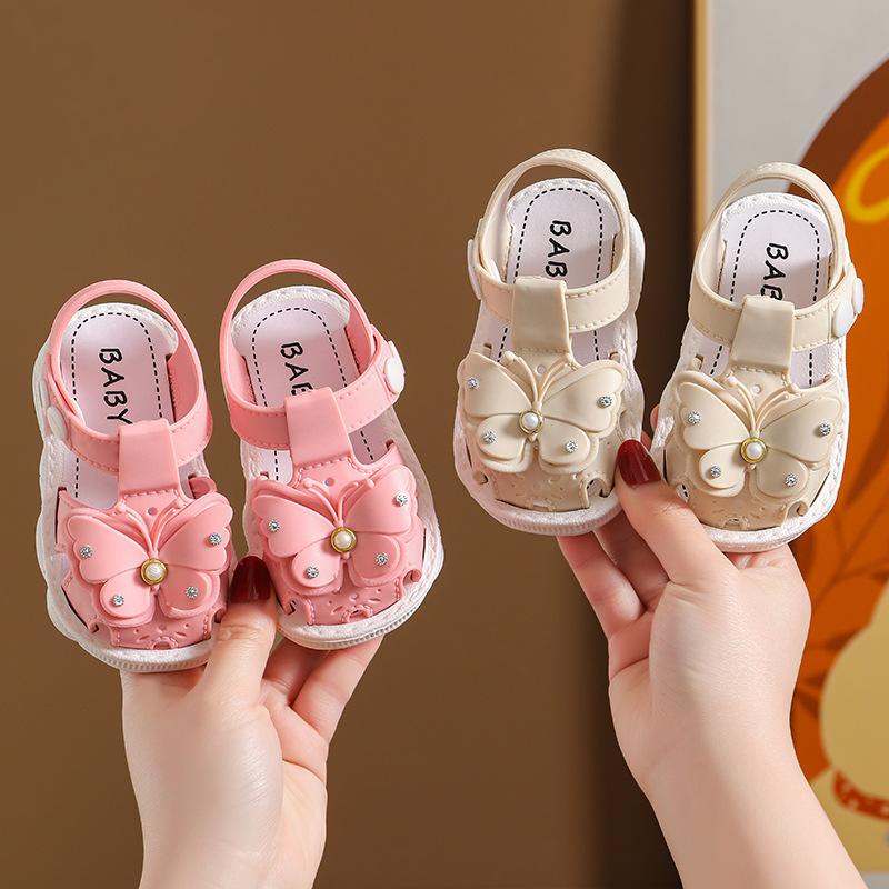 Dép Rọ Tập Đi Hoa Bướm Cực Mềm Êm Chân Cho Bé Quai Nút
