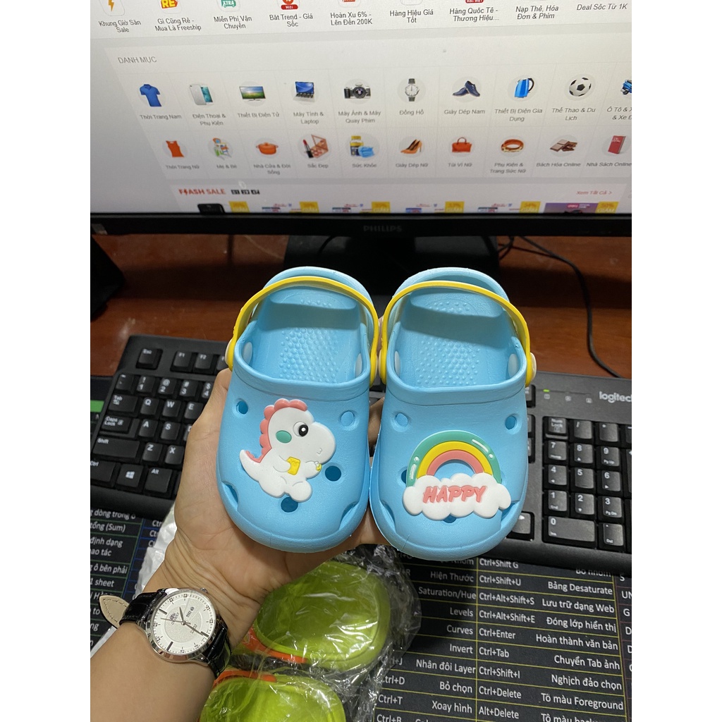 Dép sục họa tiết khủng long nhiều màu dễ thương đế mềm êm chân cho bé trai và bé gái