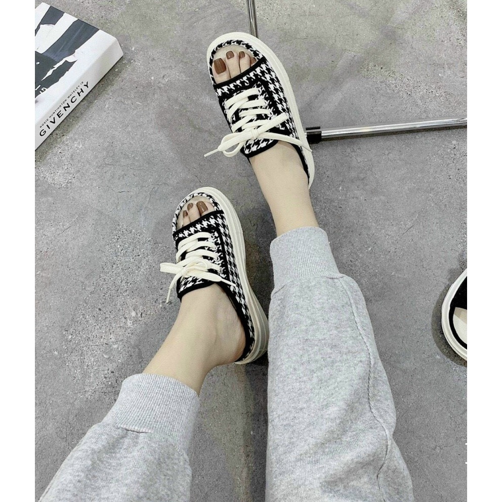 Dép sục nữ hở mũi hai màu cơ bản đen và caro chuẩn size 35-39