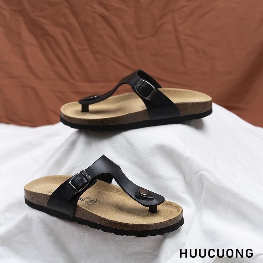 Dép unisex HuuCuong kẹp ngón đen đế trấu handmade