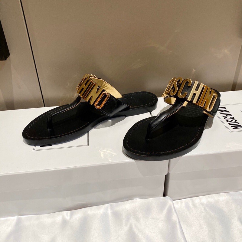 Dép xỏ ngón đế cao quai đính logo chữ đế 3.5cm moschino