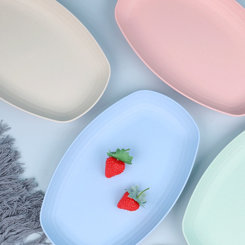 Dĩa nhựa lúa mạch hình oval đựng thức ăn, đĩa nhựa lúa mì đẹp cao cấp 4 màu pastel xinh xắn 29cm