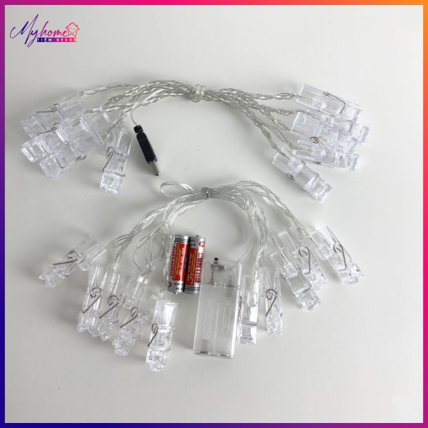 Thông tin sản phẩm: dải đèn LED kẹp tranh ảnh + Chiều dài dây đèn: 2m + Số lượng kẹp: 10 kẹp + Màu sắc: Màu be và đa màu + Nguồn điện: dùng Pin aa và nguồn USB ( có thể lựa chọn) ƯU ĐIỂM SẢN PHẨM: + Đường kính mỗi kẹp đèn: 5.5 x 2cm + Kẹp ảnh bằng nhựa màu trắng tron