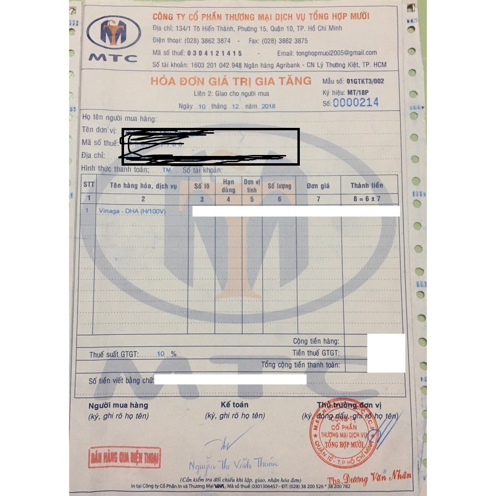 Được sử dụng không hạn chế lứa tuổi; giúp tăng cường thị lực; dưỡng da, bảo vệ da; giúp làm hạ cholesterol trong máu, phòng các bệnh tim mạch. Qui cách đóng gói: Lọ 100 viên. Nhà sản xuất: VNPoFoodThành phần Dầu gấc, DHA, Gelatin. Chỉ tiêu chất lượng chủ yếu: Lycopen 54mg/100g; Alpha-Tocopherol 11mg/100g; Beta-Caroten 65mg/100g; DHA 12mg/100g. Thông tin sản phẩm VINAGA-DHA là thực phẩm bảo vệ sức khỏe, một loại dầu chiết xuất từ quả Gấc được bổ sung thêm DHA, nên không độc hại, không có tác dụng phụ, dùng uống hàng ngày để bảo vệ sức khỏe, chống lão hóa, cải thiện sự phát triển của cơ thể và gìn giữ tuổi thanh xuân. Sản phẩm được Bộ Y tế cấp phép và được bán tại các nhà thuốc, siêu thị trên toàn quốc. Xuất khẩu sang thị trường Mỹ, Châu Âu, Nhật Bản, Đài Loan, Thái Lan. Sản phẩm được nhận Cúp Quốc tế chất lượng châu Âu năm 2012, danh hiệu Sản phẩm tốt nhất ASEAN năm 2012 và 2013, danh hiệu hàng Việt Nam chất lượng cao nhiều năm liền. Công dụng Cung cấp tiền Vitamin A, Vitamin E, Lycopen và DHA cho cơ thể. Tốt cho sự hoạt động và phát triển của tế bào não, giúp tăng cường trí nhớ. Tăng cường thị lực, giúp ngăn ngừa các bệnh thiếu vitamin A như: khô mát, mờ mắt, quáng gà, cận thị. Có tác dụng dưỡng da, bảo vệ da, giúp da luôn hồng hào, tươi trẻ, mịn màng. Phòng rụng tóc, làm tóc mượt, mềm mại. Giúp tăng cường chống ô xy hóa cho cơ thể. Nâng cao sức đề kháng; tăng khả năng miễn dịch, tăng khả năng phòng bệnh. Ngăn ngừa và hỗ trợ điều trị: trẻ em chậm lớn, suy dinh dưỡng, biếng ăn và thiếu máu. Giúp cơ thể trẻ phát triển khỏe mạnh. Phòng viêm gan, xơ gan và những thương tổn tiền ung thư, đặc biệt xơ gan có HbsAg(+) và nồng độ AFP cao đe dọa trở thành ung thư gan nguyên phát. Giúp làm hạ cholesterol trong máu, phòng các bệnh tim mạch. Một số nghiên cứu của Mỹ được công bố gần đây cho thấy các hợp chất của Beta Caroten, Lycopen, Vitamin E... có trong dầu gấc có tác dụng làm vô hiệu hóa 75% các chất gây ung thư nói chung, nhất là ung thư vú.. Đối tượng sử dụng Không hạn chế lứa tuổi. Người bị khô mắt, mờ mắt, quáng gà. Người bị nám, sạm da, khô tóc. Trẻ em chậm lớn hay ốm vặt. Người sau phẫu thuật, tổn thương da, chậm lành vết thương. Người bị bệnh tim mạch, xơ gan. Cách dùng Người lớn: ngày uống 4 viên. Trẻ em: ngày uống 2 viên. Mỗi đợt uống tối thiểu từ 50 - 60 ngày. Các đợt uống cách nhau 7 ngày. Lưu ý Sản phẩm này là thực phẩm chức năng, không có tác dụng thay thế thuốc chữa bệnh. #vitamin Quy cách đóng gói Dạng viên nang mềm, lọ 100 viên. Hạn dùng 03 năm kể từ ngày sản xuất. Bảo quản Để nơi khô ráo, tránh ánh sáng trực tiếp và nhiệt độ cao > 30°C. Sản xuất tại Việt Nam