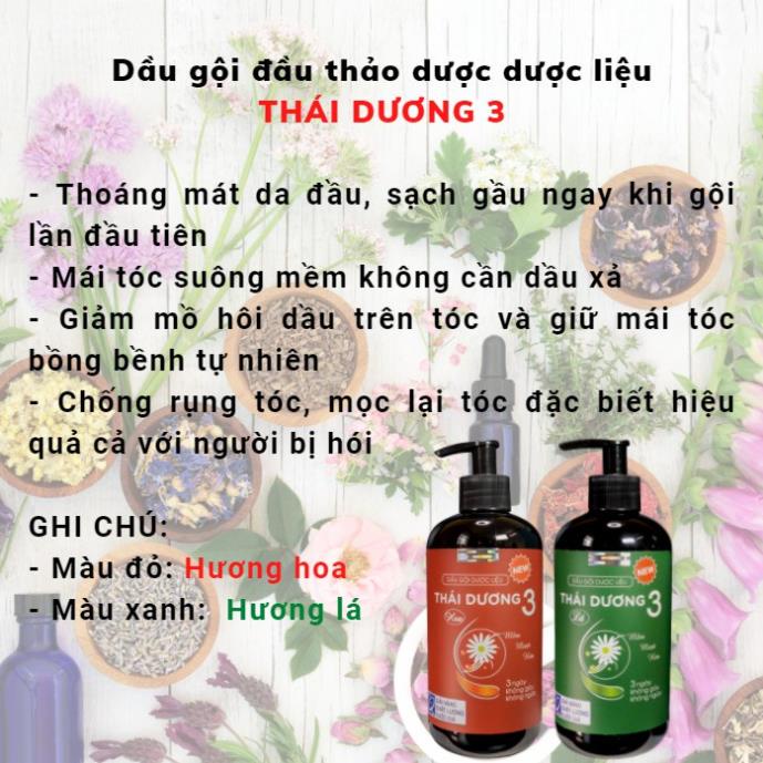 DẦU GỘI DƯỢC LIỆU THÁI DƯƠNG 3 HƯƠNG HOA, LÁ , dưỡng tóc mềm mượt, sạch gàu, hết ngứa, giảm rụng tóc