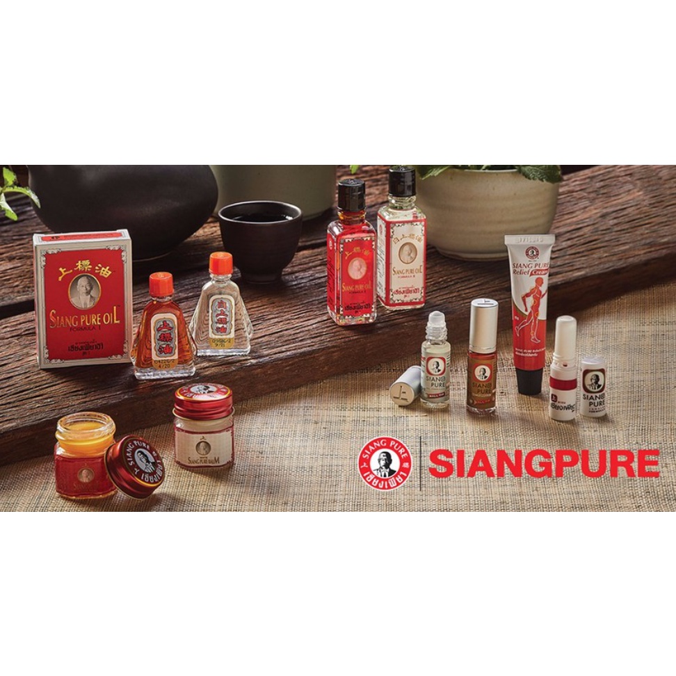 Dầu gió ông già Siang Pure Oil Formula I chữ vàng Thái Lan 3cc/ 7cc Xuất xứ : Thái Lan Dung tích : 3cc và 7cc Thương hiệu : Siang Pure Mã vạch: 8850109001130 (3cc), 8850109001123 (7cc) Hạn sử dụng : 5 năm in trên bao bì sản phẩm - Siang pure oil còn được gọi với cái