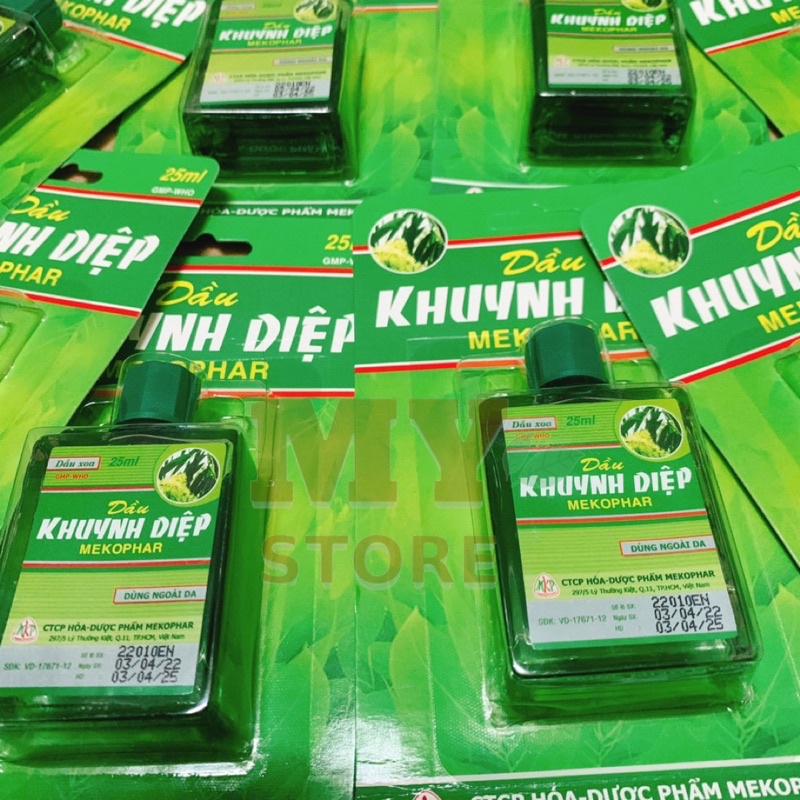 Dầu Khuynh Diệp Mekophar Xuất Xứ: Việt Nam Dung tích:25ml Hạn sử dụng: 3 năm kể từ ngày sx *Công dụng: Sử dụng khi cảm cúm, sổ mũi, nghẹt mũi, ho tức ngực, đau bụng, nhức mỏi, nhức đầu, chóng mặt, buồn nôn, côn trùng đốt, bong gân, sưng. *Thành phần Hoạt chất: Eucalyptol 16,208g, Camphor 4,687g Tá dược vừa đủ 25ml (Màu xanh Chlorophyl, Dầu Paraffin). *Hướng dẫn sử dụng – Xoa bóp ngoài da tại chỗ đau. – Cảm cúm, sổ mũi, nghẹt mũi : xoa dầu hai bên thái dương, cổ, sau gáy, mũi. – Nhức đầu, chóng mặt, buồn nôn : xoa dầu hai bên thái dương, cổ, nhân trung, mũi. – Ho tức ngực : xoa dầu trước ngực, cổ và sau lưng. – Ăn không tiêu, đau bụng : xoa dầu vùng bụng. – Trường hợp cảm cúm, có thể xông : cho 5– 10 giọt dầu vào bình xông có khoảng 250ml nước nóng. *Thận trọng: -Nếu dầu dính vào mắt, rửa kỹ với nước hay -nước ấm. -Không thoa lên da mặt, thóp, mũi trẻ sơ sinh hoặc trẻ nhỏ. -Không bôi lên niêm mạc, vùng mắt, vết thương hở,… -Không nên bôi trên diện rộng, toàn thân