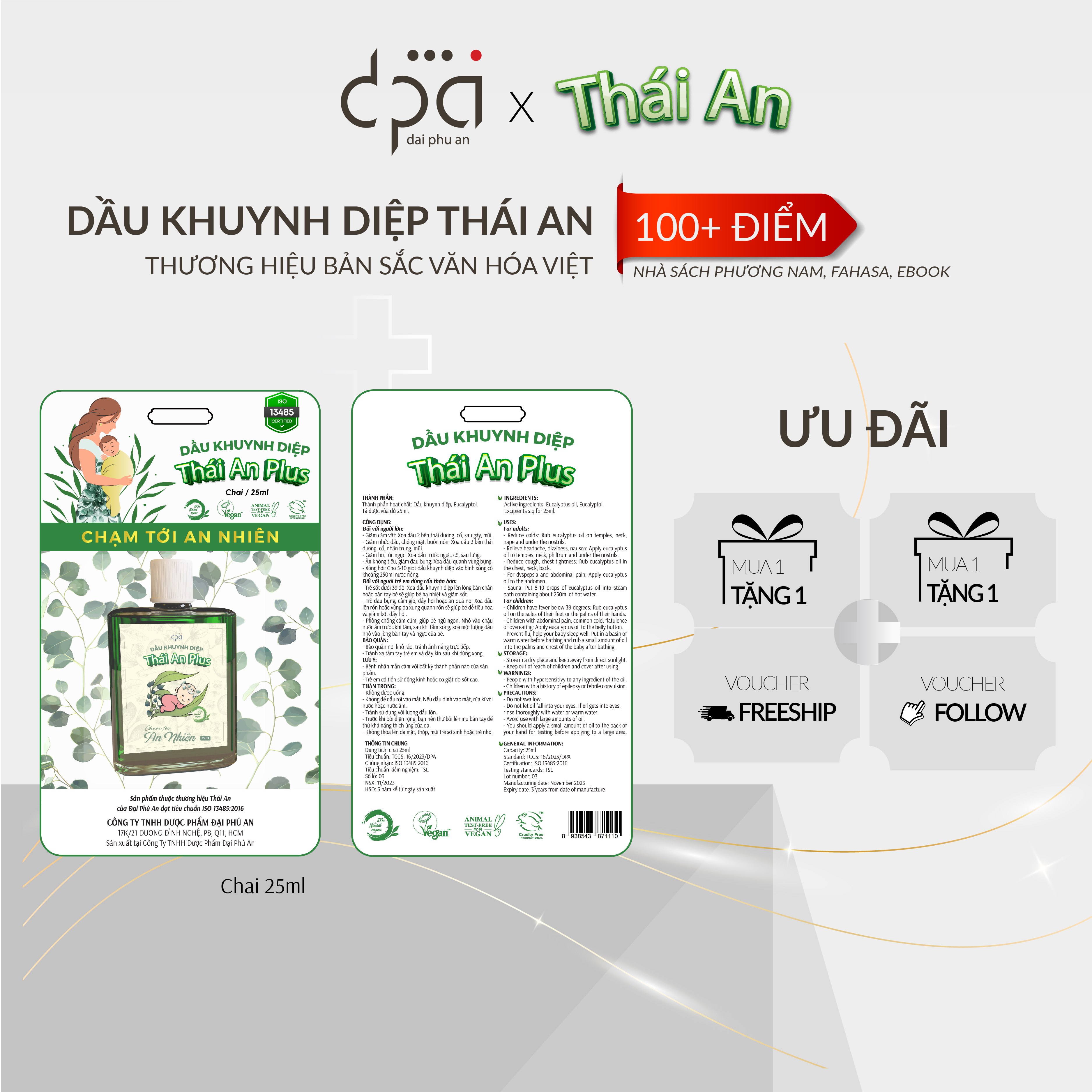 Dầu Khuynh Diệp Thái An Plus Giúp làm ấm, giảm ho, xua đuổi muỗi