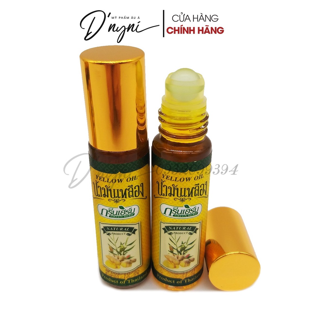 Dầu Lăn Thảo Dược Gừng GREEN HERB Yellow Oil Natural Thái Lan 8ml