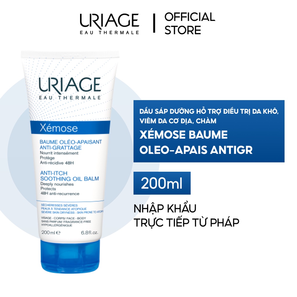 Dầu sáp dưỡng ẩm cho da khô, chàm cho da mặt và body Uriage XEMOSE BAUME OLEO-APAIS ANTIGR T 200ml CÔNG DỤNG SẢN PHẨM: - Dầu sáp dưỡng ẩm dành cho da khô, da bị ngứa, bị viêm da cơ địa, chàm. - Dành cho vùng da mặt và toàn thân. - Giúp bảo vệ và làm dịu da đem lại