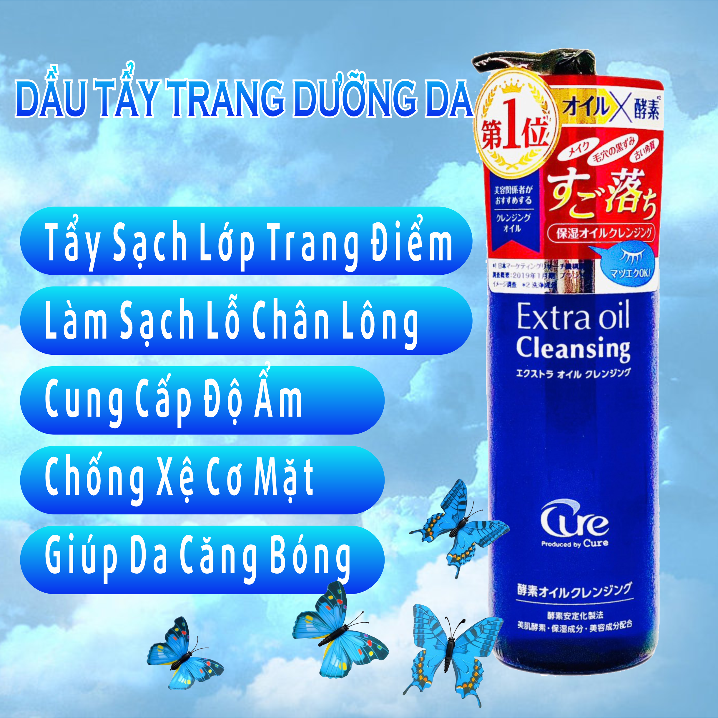 Dầu Tẩy Trang Cure Extra Oil Cleansing Dưỡng Mịn Da Chai 200mLSố Lô: In trên sản phẩmThể Tích Thực: 200 mLMã Vạch: 4589563520058Dầu tẩy trang có chứa các enzyme giúp tẩy sạch lớp trang điểm, lớp ...