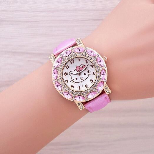 Dễ Thương Đồng Hồ Đeo Tay Họa Tiết hello kitty Đính Pha Lê Xinh Xắn