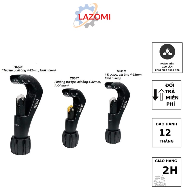 Dao cắt ống đồng Tasco Black TB30T Hãng sản xuất: Tasco Model: TB30T Xuất xứ: Đài Loan HDSD: Dùng để cắt ống đồng Lưỡi dao được mạ bằng Titan, lưỡi dao có thể thay thế Cỡ ống cắt 1/8’’ – 1 1/8’’ ( 4-32mm) Tay cầm được bọc nhựa TPR đạt chuẩn EN71, RoHS và FDA, không gây ung thư Bảo hành 12 tháng, không bảo hành lưỡi dao.