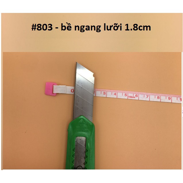 + Thiết kế đủ size để chọn: 1/ Mẫu #120: tổng chiều dài 125mm, bề ngang lưỡi giao 9mm, nặng khoảng 8gam. có 2 kiểu đóng gói: túi nylon & vĩ giấy. 2/ Mẫu #804: tổng chiều dài 130mm, bề ngang lưỡi giao 9mm, nặng khoảng 9 gam. có 2 kiểu đóng gói: túi nylon & vĩ giấy. 3/ Mẫu #803: tổng chiều dài 170mm, bề ngang lưỡi giao 18mm, nặng khoảng 20 gam. có 1 kiểu đóng gói bằng túi nylon 4/ Mẫu #802: tổng chiều dài 170mm, bề ngang lưỡi giao 20mm, nặng khoảng 24gam. có 1 kiểu đóng gói bằng túi nylon 5/ Mẫu #801: tổng chiều dài 170mm, bề ngang lưỡi giao 22mm, nặng khoảng 40gam. có 1 kiểu đóng gói bằng túi nylon 6/ Mẫu #800: tổng chiều dài 150mm, bề ngang lưỡi giao 22mm, nặng khoảng 50gam. có 1 kiểu đóng gói bằng túi nylon. 7/ Mãu vỏ dao bằng thép: tổng chiều dài 130mm, bề ngang lưỡi giao 9mm, nặng khoảng 15 gam. có 2 kiểu đóng gói: túi nylon & vĩ giấy. + Lưỡi dao làm bằng thép ko rỉ cho độ sắc cần thiết khi sử dụng. + Dao dùng để cắt , rọc giấy, cắt chi tiết thủ làm thủ công. + Các đốt của lưỡi dao có thể bẻ ngắn lại khi đầu dao bị mòn. + Phù hợp với khối văn phòng . shop chuyên bán hàng lẻ với giá sĩ .