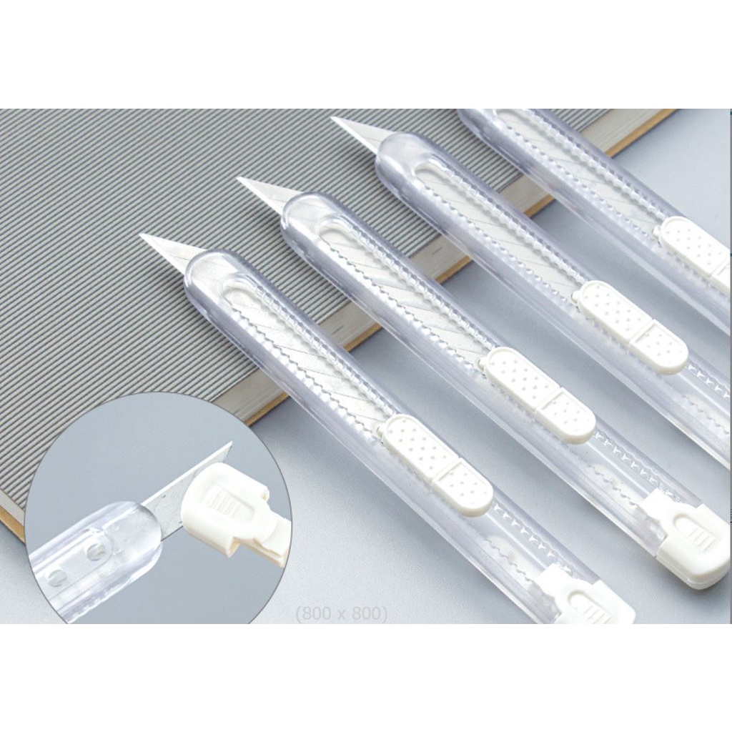 Dao rọc giấy trong suốt kèm lưỡi dao 30 độ siêu bén, lưỡi dao 30 độ thay thế Dao cắt độ dài 13cm Màu sắc trong suốt, thiết kế hiện đại tối giản, lưỡi dao siêu bén, dễ điều khiển Hộp lưỡi dao gồm 10 lưỡi kích thước 86mmx9mm Xuất xứ Trung Quốc